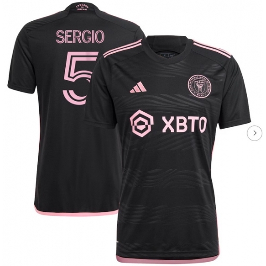 Men's Inter Miami CF #5 Sergio 2025 Black Away Soccer Jersey Suit