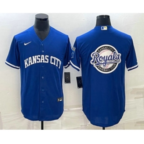 >Men's Kansas City Royals Big Logo Blue 2022 City Connect Cool Base Stitched Jerseys