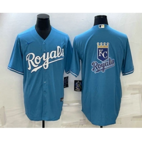 Men's Kansas City Royals Big Logo Light Blue Stitched MLB Cool Base Nike Jersey