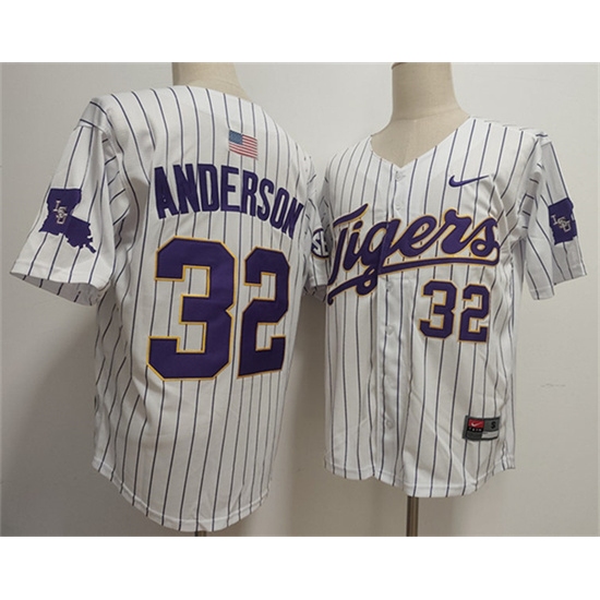 >Men's LSU Tigers #32 Kade Anderson White 2025 Stitched Baseball Jersey