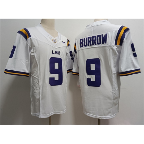 Men's LSU Tigers #9 Burrow White College Football Jersey