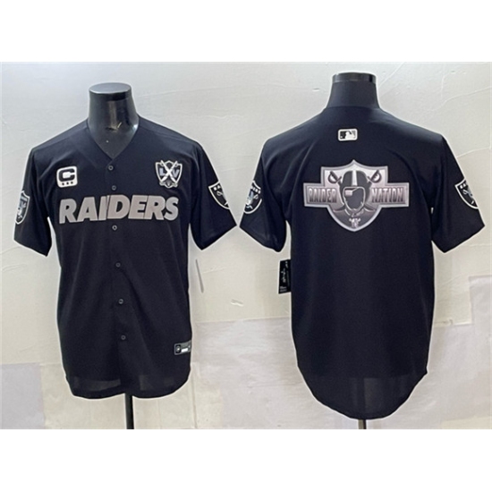 >Men's Las Vegas Raiders Team Big Logo Black With Nevada Silver Stat And 65th Anniversary 3-Star C Stitched Baseball Jersey