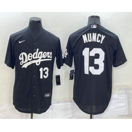 Men's Los Angeles Dodgers #13 Max Muncy Number Black Turn Back The Clock Stitched Cool Base Jersey