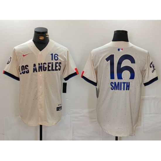 >Men's Los Angeles Dodgers #16 Will Smith Cream 2024 City Connect Limited Stitched Jersey