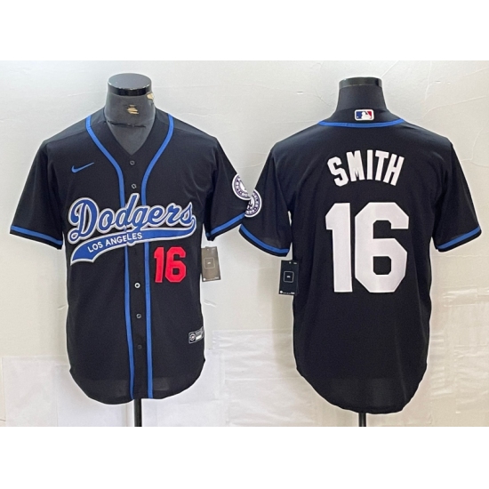 >Men's Los Angeles Dodgers #16 Will Smith Number Black With Cool Base Stitched Baseball Jersey