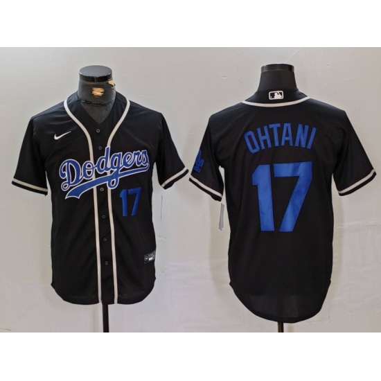 Men's Los Angeles Dodgers #17 Shohei Ohtani Number Black Cool Base With Stitched Baseball Jerseys