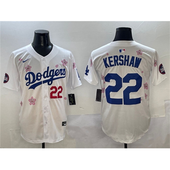 Men's Los Angeles Dodgers #22 Clayton Kershaw White 2025 World Tour Tokyo Series Home Stitched Baseball Jersey