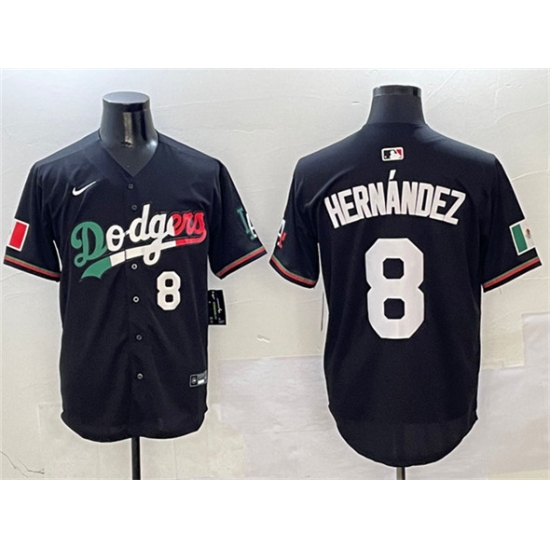 >Men's Los Angeles Dodgers #8 Enrique Hernandez Black Mexico Flag Limited Stitched Baseball Jersey