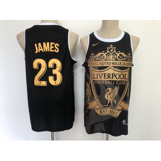 >Men's Los Angeles Lakers #23 LeBron James Black Gold Swingman Camo Collection Jersey