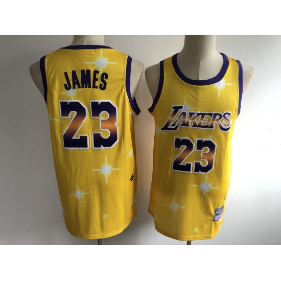 Men's Los Angeles Lakers #23 LeBron James Yellow Hwc Starry Jersey