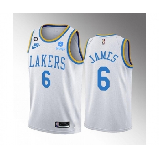 Men's Los Angeles Lakers #6 LeBron James 2022-23 White Classic Edition No.6 Patch Stitched Basketball Jersey