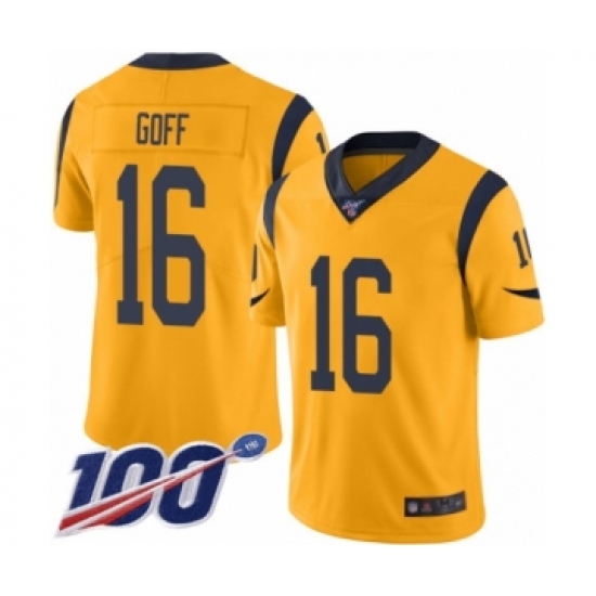 >Men's Los Angeles Rams #16 Jared Goff Limited Gold Rush Vapor Untouchable 100th Season Football Jersey