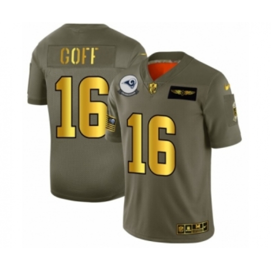 Men's Los Angeles Rams #16 Jared Goff Limited Olive Gold 2019 Salute to Service Football Jersey
