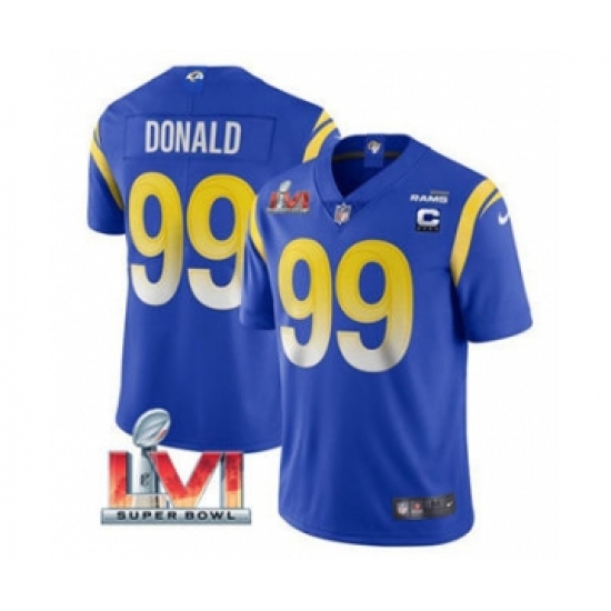 Men's Los Angeles Rams #99 Aaron Donald Royal 2022 With C Patch Super Bowl LVI Vapor Limited Jersey