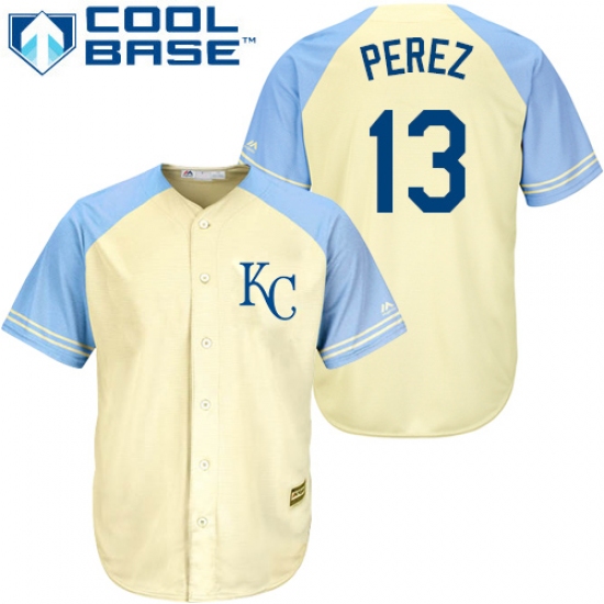 Men's Majestic Kansas City Royals #13 Salvador Perez Replica Cream Exclusive Vintage Cool Base MLB Jersey