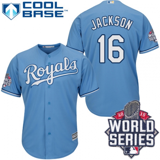 Home>MLB>Kansas City Royals>Bo Jackson>Men's Majestic Kansas City Royals #16 Bo Jackson Authentic Light Blue Alternate 1 Cool Base 2015 World Series Patch MLB Jersey