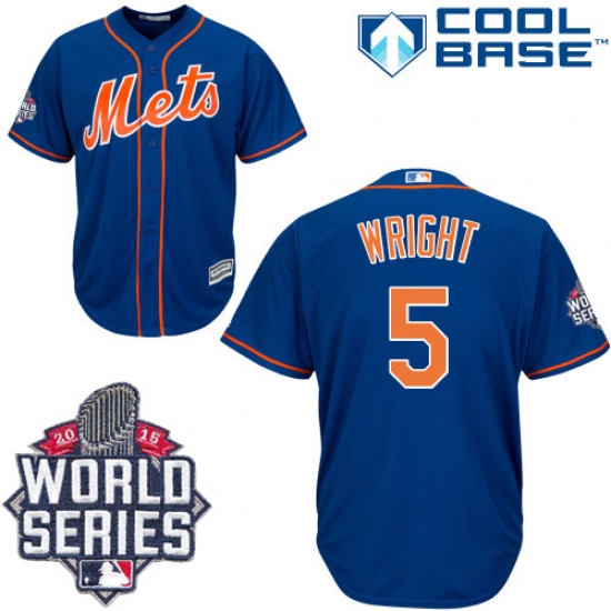 Men's Majestic New York Mets #5 David Wright Replica Royal Blue Alternate Home Cool Base 2015 World Series MLB Jersey