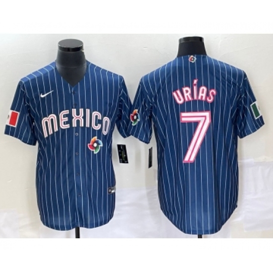 Men's Mexico Baseball #7 Julio Urías 2023 Navy World Baseball Classic Stitched Jersey