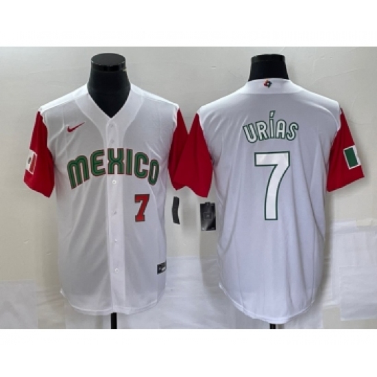 Mens Mexico Baseball #7 Julio Urias Number 2023 White World Baseball Classic Stitched Jersey
