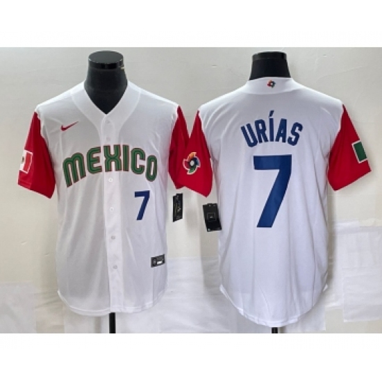 Men's Mexico Baseball #7 Julio Urias Number 2023 White World Baseball Classic Stitched Jersey1