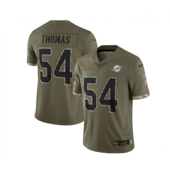 Men's Miami Dolphins #54 Zach Thomas 2022 Olive Salute To Service Limited Stitched Jersey