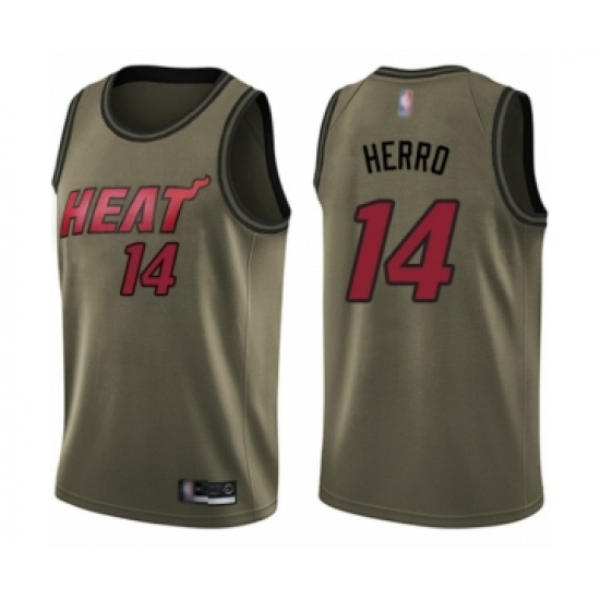 >Men's Miami Heat #14 Tyler Herro Swingman Green Salute to Service Basketball Jersey