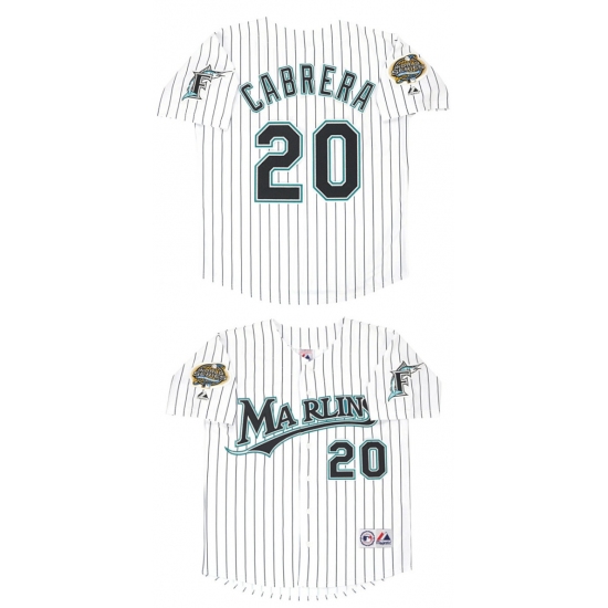>Men's Miami Marlins #20 Miguel Cabrera White 2003 Throwback Stitched Baseball Jersey