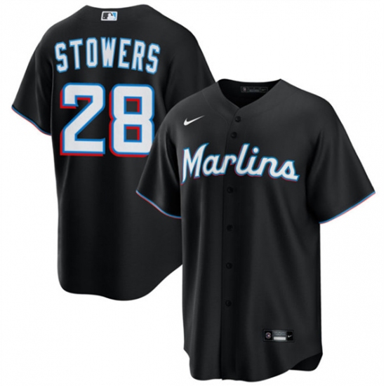Men's Miami Marlins #28 Kyle Stowers Black Cool Base Stitched Baseball Jersey