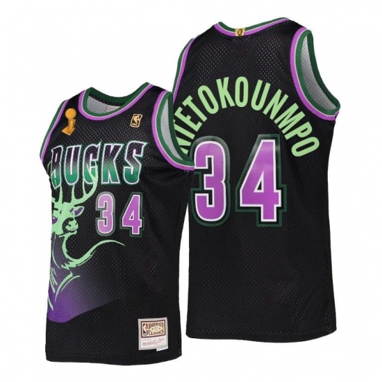 Men's Milwaukee Bucks #34 Giannis Antetokounmpo Black Edition Stitched Basketball Jersey