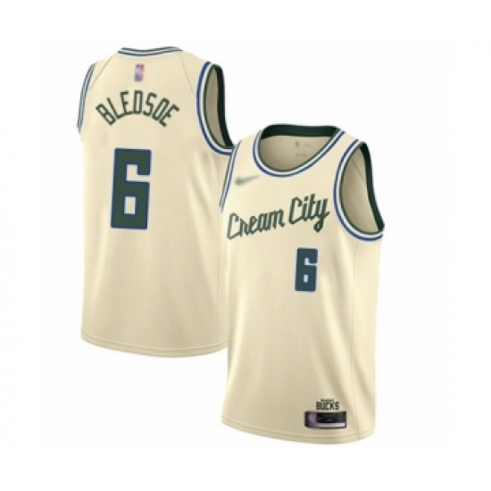 >Men's Milwaukee Bucks #6 Eric Bledsoe Swingman Cream Basketball Jersey - 2019 20 City Edition