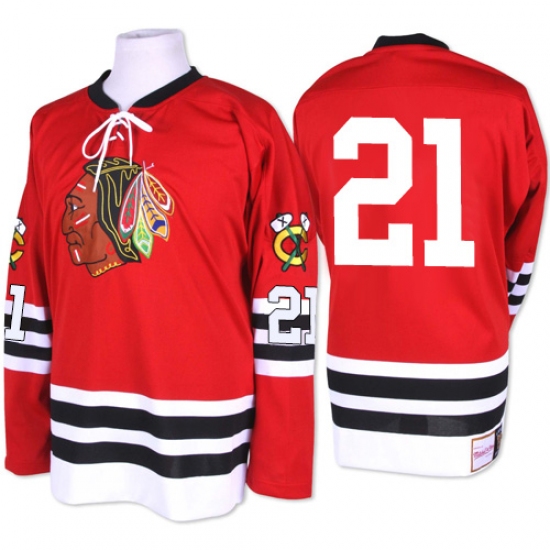 Men's Mitchell and Ness Chicago Blackhawks #21 Stan Mikita Premier Red 1960-61 Throwback NHL Jersey