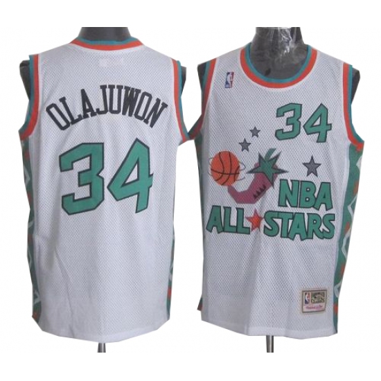 Home>NBA>Houston Rockets>Hakeem Olajuwon>Men's Mitchell and Ness Houston Rockets #34 Hakeem Olajuwon Authentic White 1996 All Star Throwback NBA Jersey