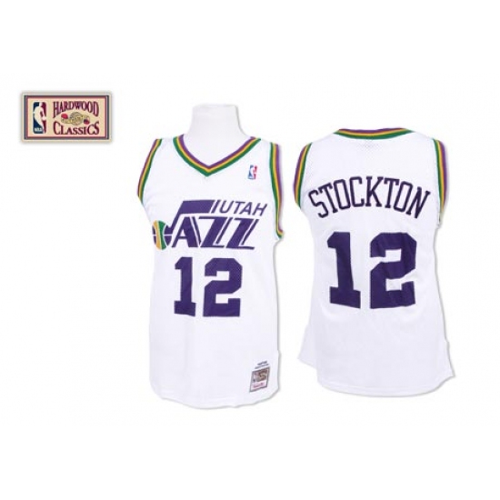 Men's Mitchell and Ness Utah Jazz #12 John Stockton Swingman White Throwback NBA Jersey