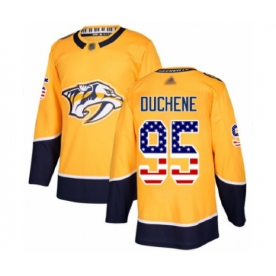 >Men's Nashville Predators #95 Matt Duchene Authentic Gold USA Flag Fashion Hockey Jersey