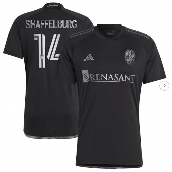 Mens Nashville SC Jacob Shaffelburg adidas Black 2024 Man In Black Kit Replica Player Jersey