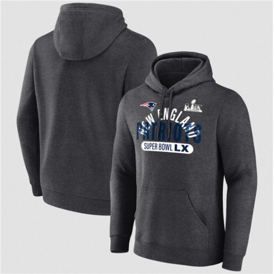 >Men's New England Patriots Heather Charcoal 2025 Super Bowl LX Game Plan Hoodie