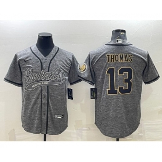 >Men's New Orleans Saints #13 Michael Thomas Gray With Patch Cool Base Stitched Baseball Jersey