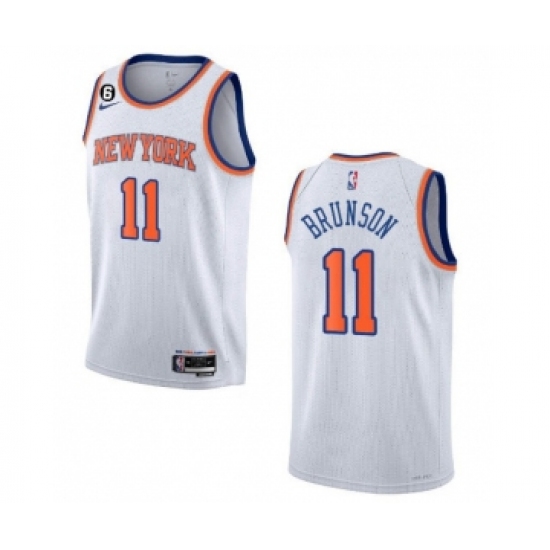 Men's New Yok Knicks #11 Jalen Brunson White With NO.6 Stitched Basketball Jersey