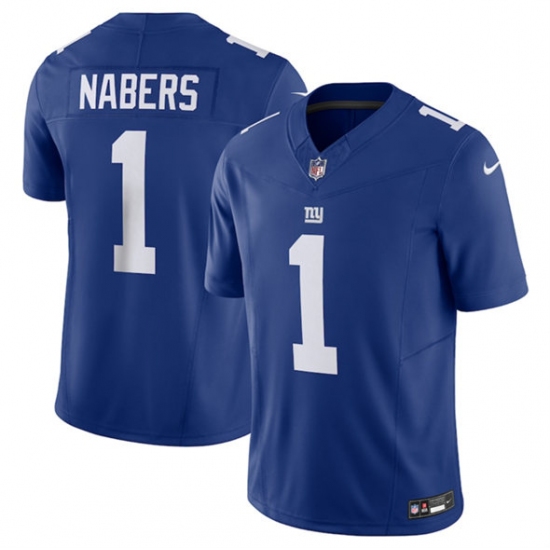 >Men's New York Giants #1 Malik Nabers Blue 2024 Draft F.U.S.E. Vapor Untouchable Limited Football Stitched Jersey