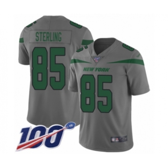 >Men's New York Jets #85 Neal Sterling Limited Gray Inverted Legend 100th Season Football Jersey