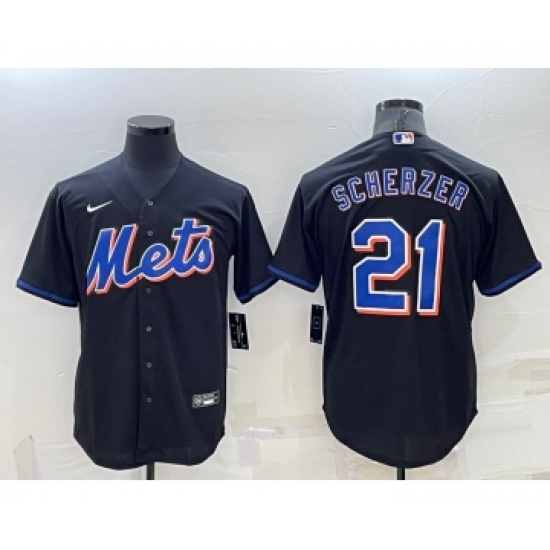 Men's New York Mets #21 Max Scherzer Black Stitched MLB Cool Base Nike Jersey