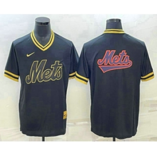 Men's New York Mets Big Logo Black Gold Nike Cooperstown Legend V Neck Jerseys