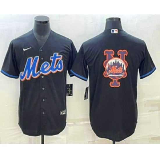 >Men's New York Mets Big Logo Black Stitched MLB Cool Base Nike Jerseys