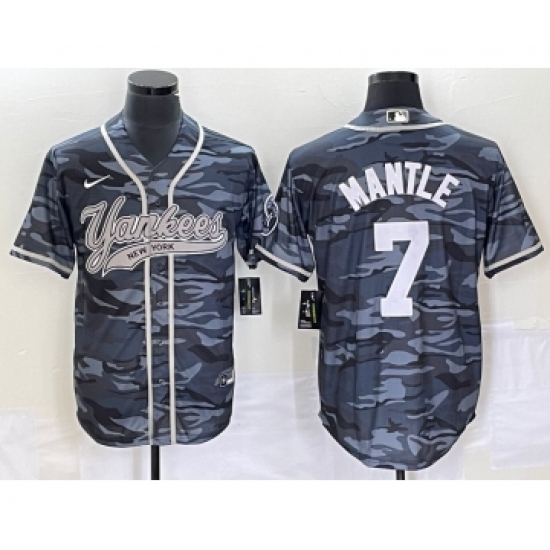 Men's New York Yankees #7 Mickey Mantle Grey Camo Cool Base Stitched Baseball Jersey