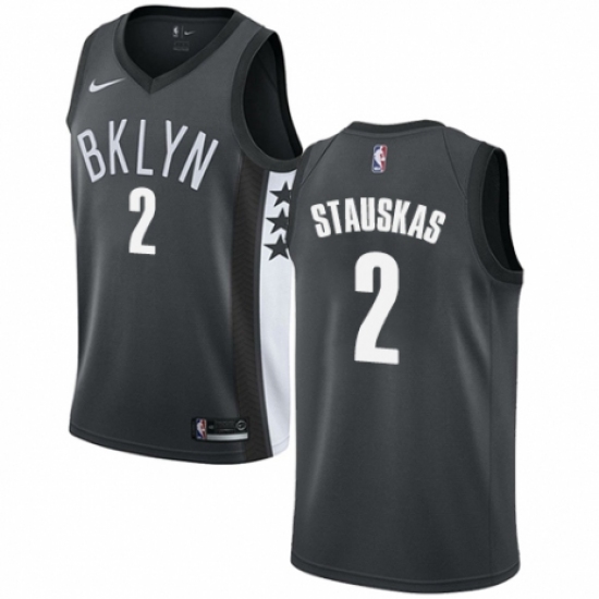 >Men's Nike Brooklyn Nets #2 Nik Stauskas Authentic Gray NBA Jersey Statement Edition