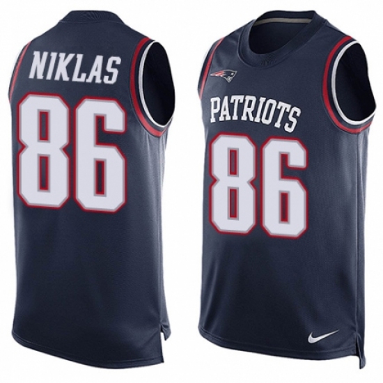 Men's Nike New England Patriots #86 Troy Niklas Limited Navy Blue Player Name & Number Tank Top NFL Jersey