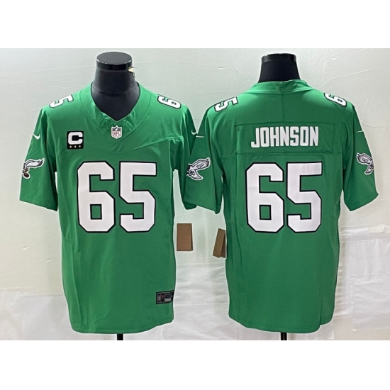 >Men's Nike Philadelphia Eagles #65 Lane Johnson Green 2023 F.U.S.E. C Stitched Football Jersey