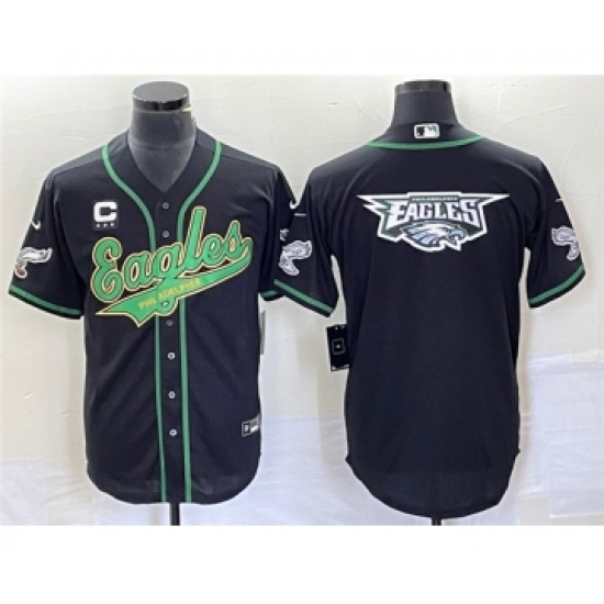 >Men's Nike Philadelphia Eagles Black Team Big Logo With C Cool Base Stitched Baseball Jersey