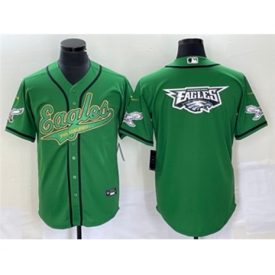 Men's Philadelphia Eagles Blank Green 2025 Super Bowl LIX Stitched Baseball Jersey