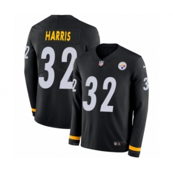 >Men's Nike Pittsburgh Steelers #32 Franco Harris Limited Black Therma Long Sleeve NFL Jersey